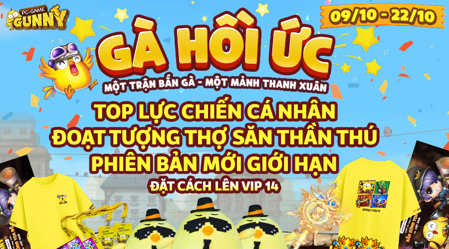 Hạng 2 - 10 | Combo: Gà Bông Gunny Lớn x1 + Lót chuột Gunny Gaming 2025 x1 + Áo Thun GunnyPC 2025 x1 + Móc Khóa Gà Bông 2025 x1 |