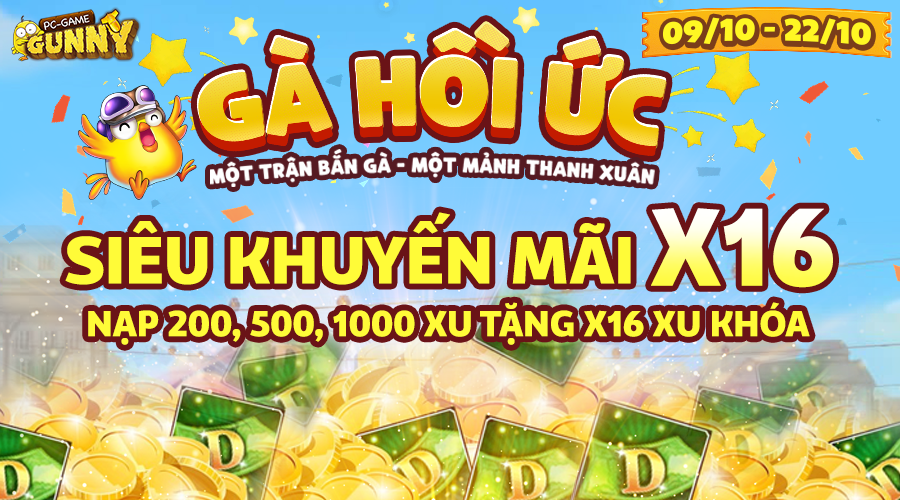 *Gunner nhận thưởng tại: Quảng Trường Game - Click chọn nút EVENT --> Hấp Dẫn --> x15 Xu Khóa!