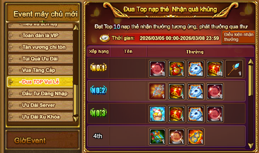 Sự kiện Đua TOP Vui Lễ chính thức khởi tranh với loạt phần thưởng cực hiếm, cực chất dành cho những chiến binh chịu chơi nhất!