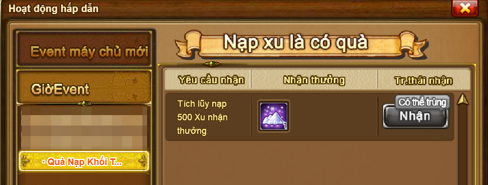 - Đắp đủ số lượng tương ứng sẽ nhận được phần thưởng của mỗi mốc. Mỗi mốc chỉ nhận thưởng được 1 lần. Riêng các mốc có giới hạn sẽ hiển thị riêng.