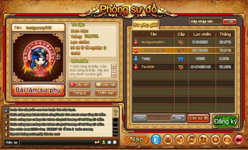 Và game thủ có cấp độ nhân vật từ 6 -16 không có sư phụ sẽ được bái sư. Sư phụ phải lớn hơn mình 5 cấp và không có hơn 3 đệ tử. Sau lần từ bỏ sư phụ gần nhất, 24 tiếng sau mới có thể bái sư tiếp.